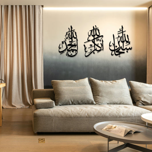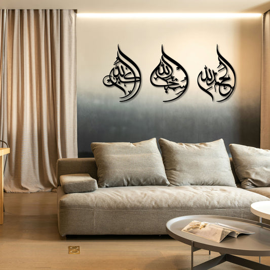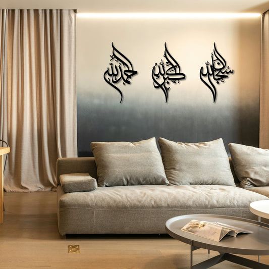 ALHAMDULILLAH SUBHANALLAH ALLAHU AKBAR 3PC ARABIC SET 3 METAL WALL ART