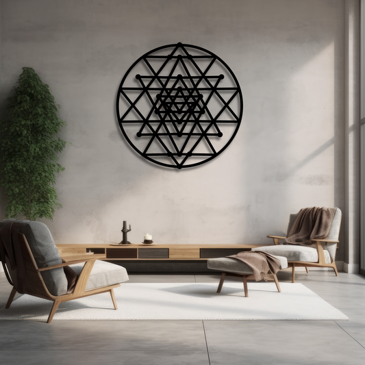 GEOMETRIC TRIANGLES ROUND METAL WALL ART