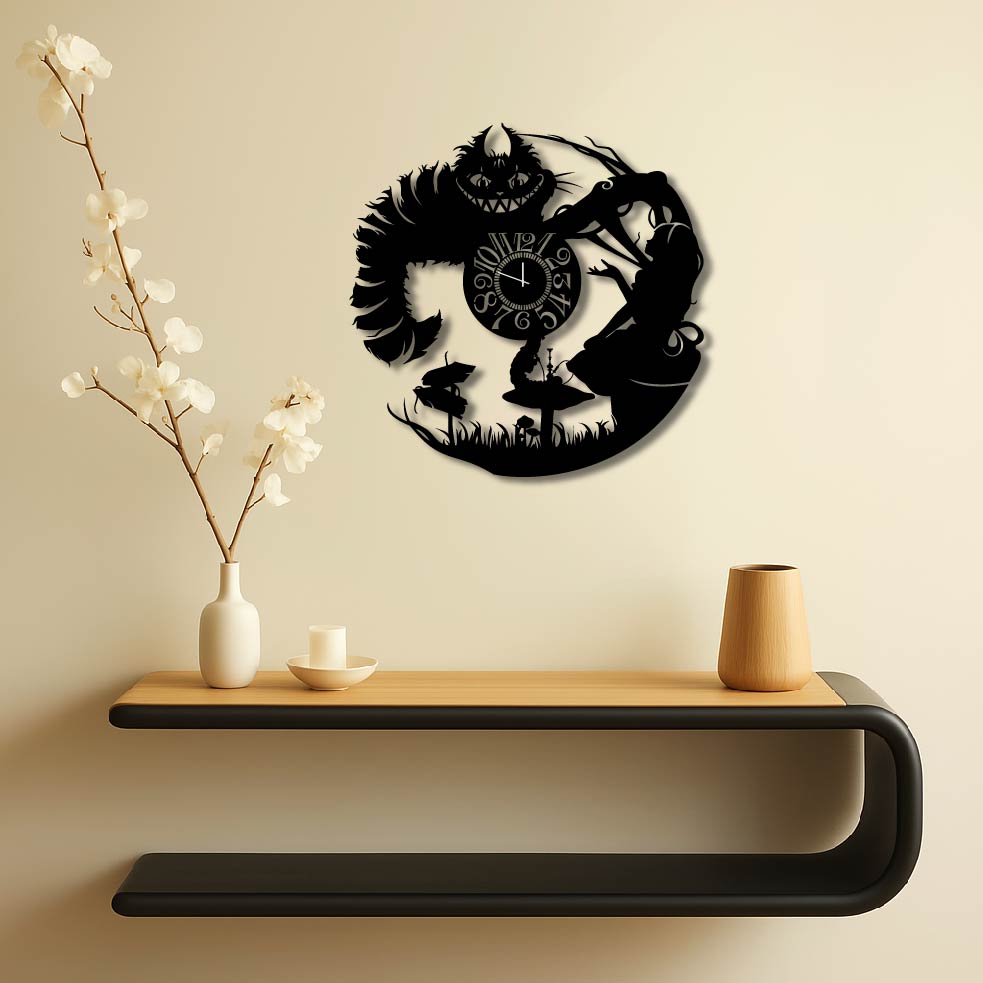 Bring your space to life with this beautiful "ALICE IN WONDERLAND CHESHIRE CAT METAL WALL ART CLOCK"