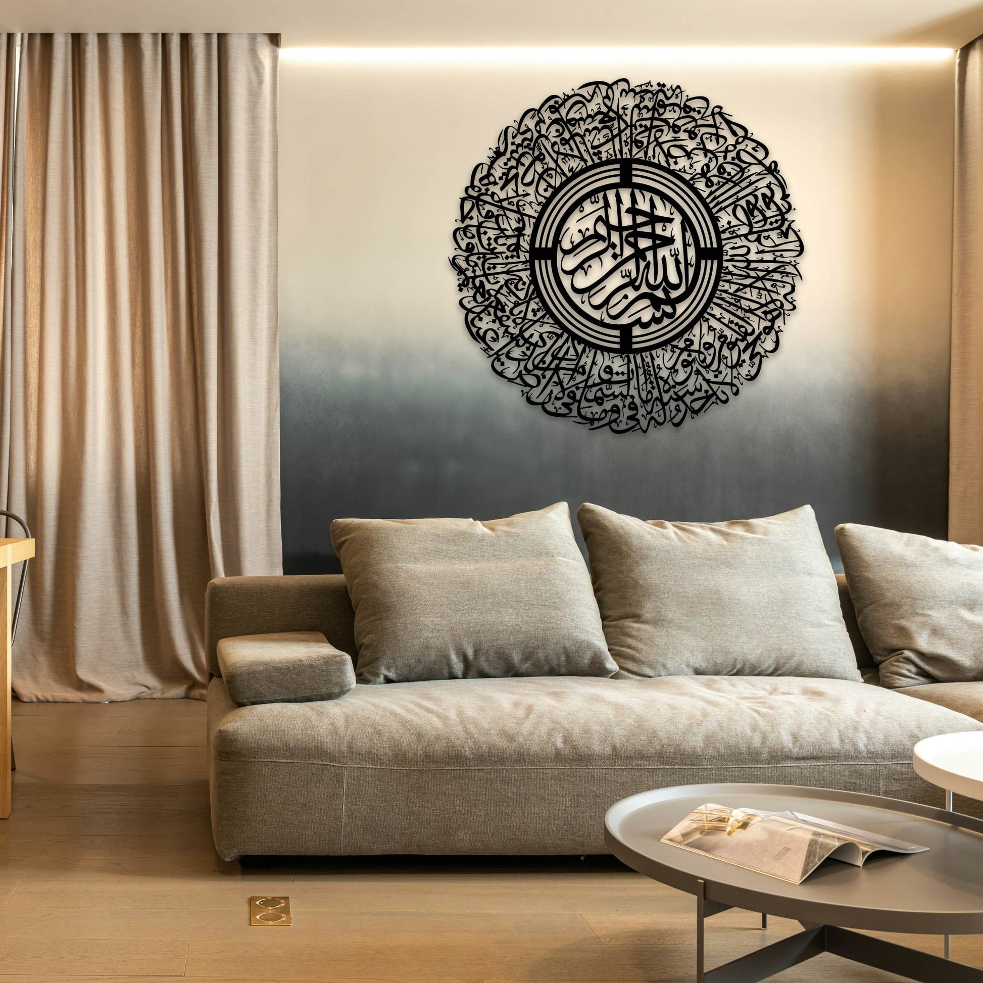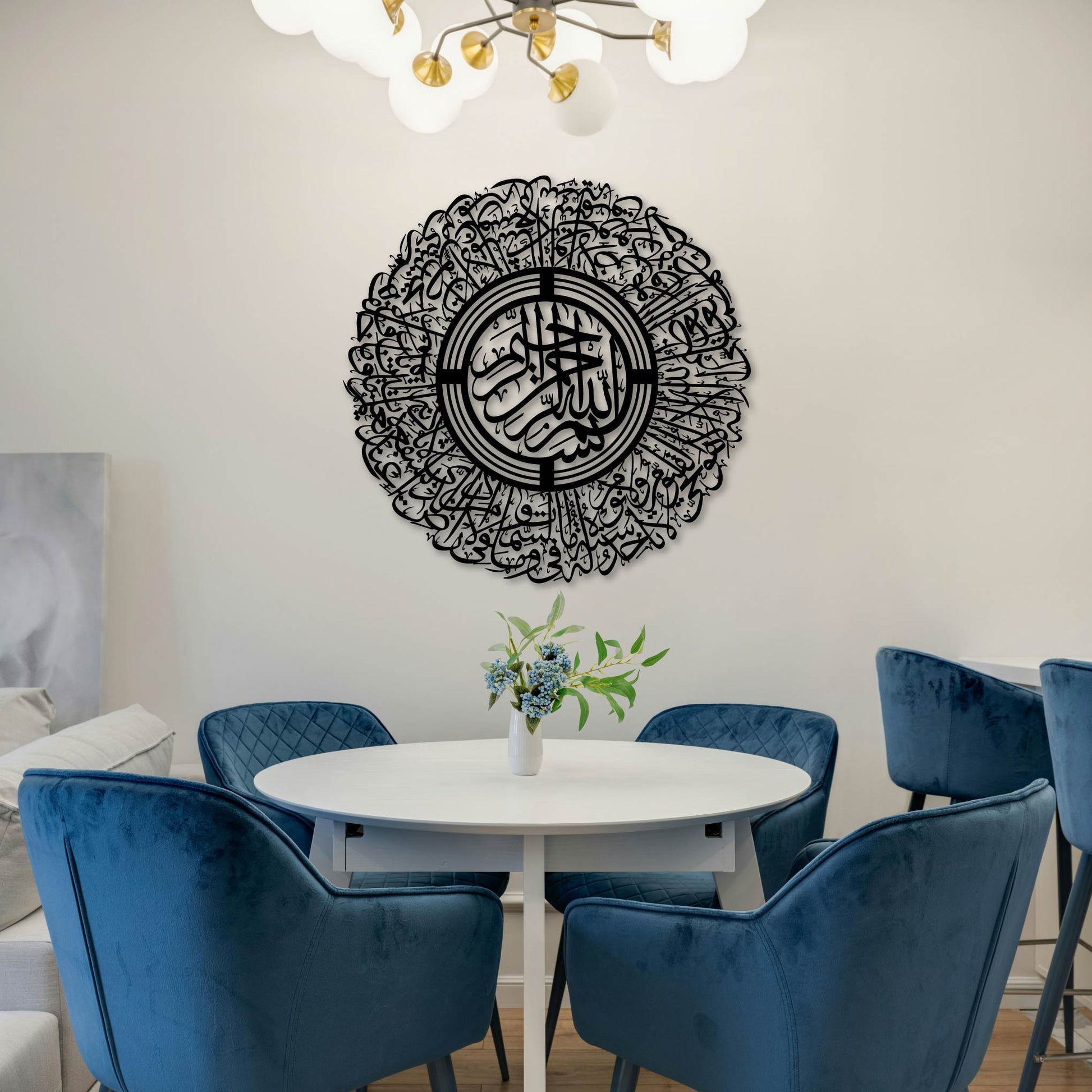 Bring your space to life with this beautiful AYATUL KURSI VERY DETAILED ROUND FULL METAL WALL ART