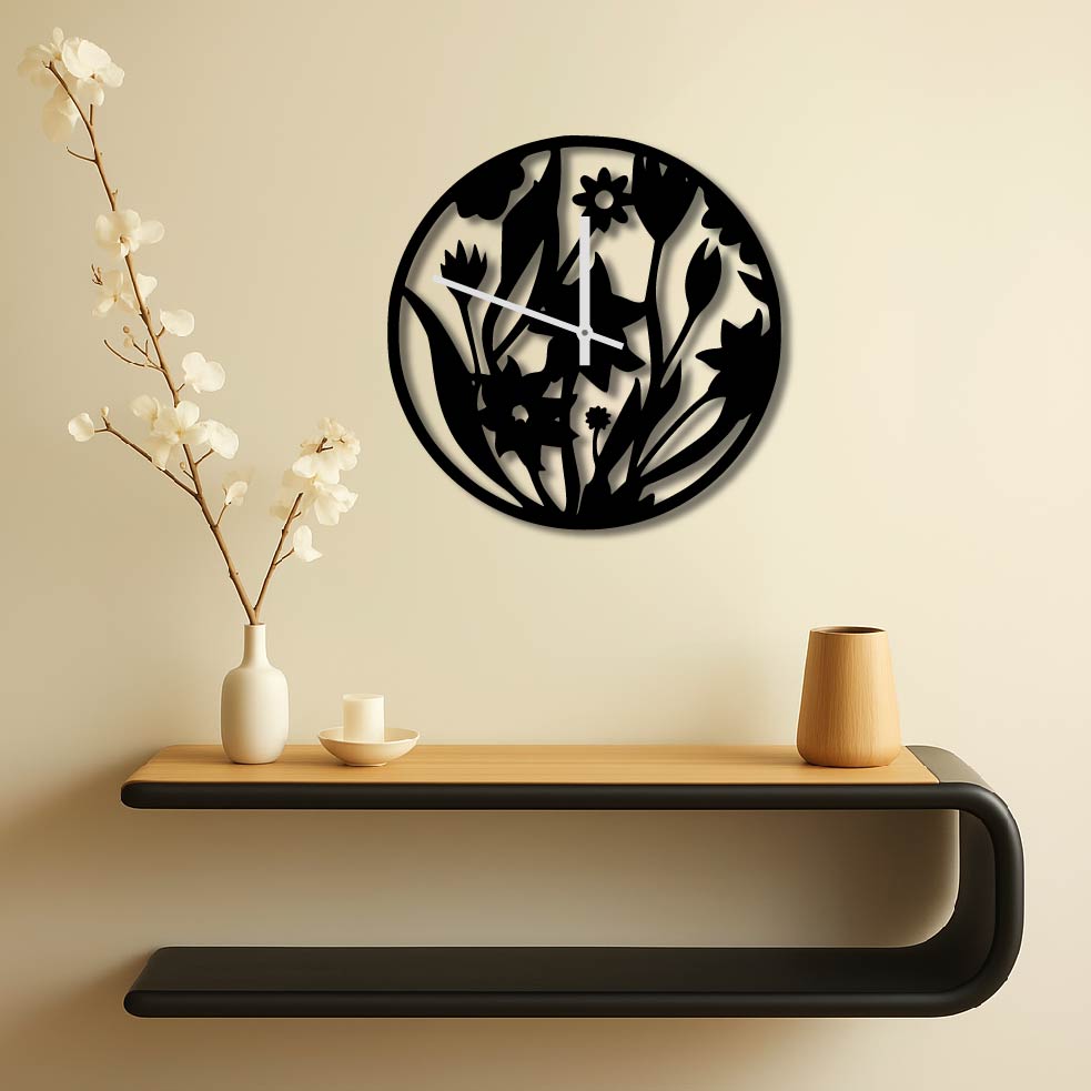 FLOWERS METAL WALL ART CLOCK