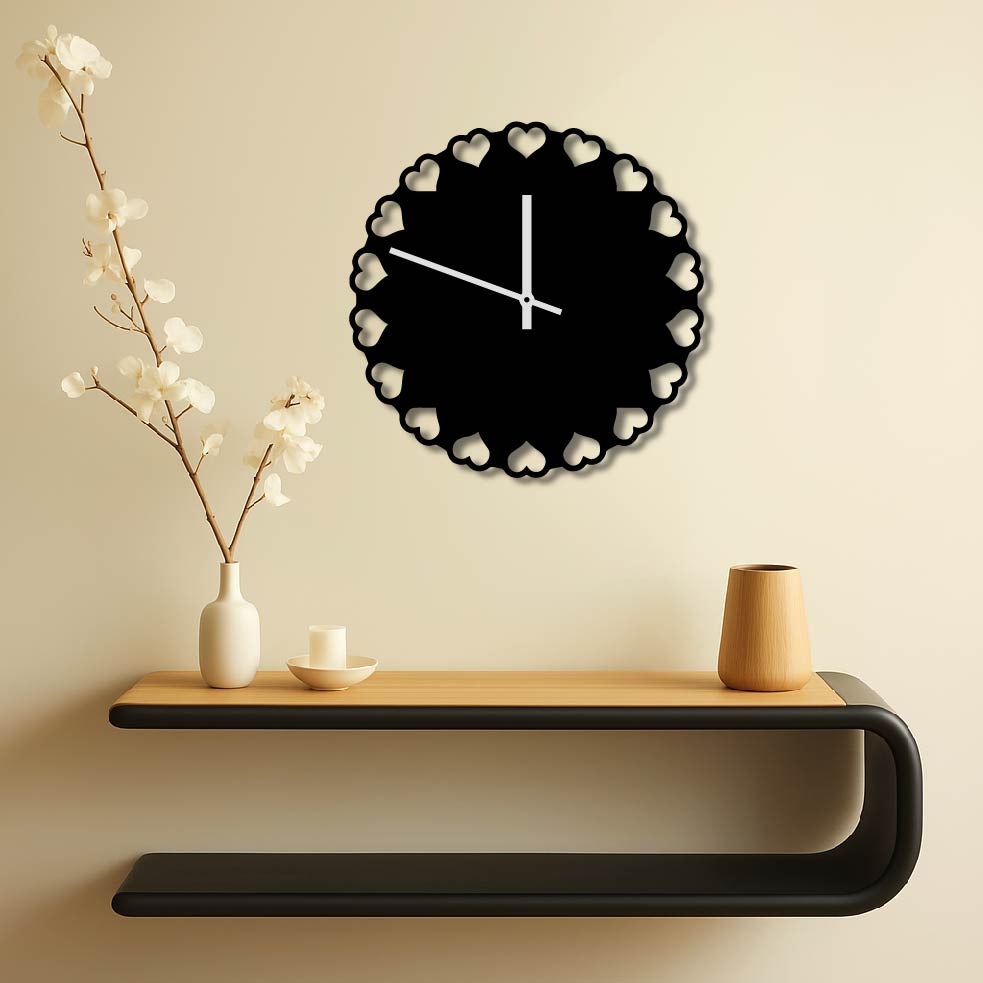 Bring your space to life with this beautiful HEARTS BORDER METAL WALL ART CLOCK