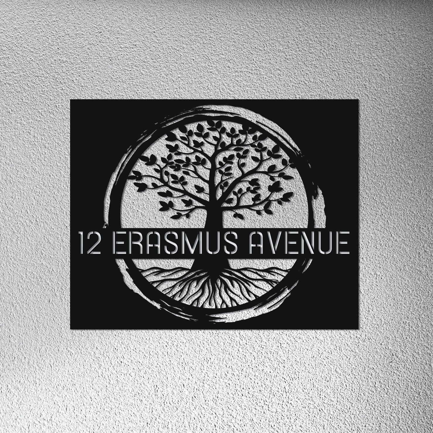 TREE OF LIFE HOUSE NUMBER PLATE METAL WALL ART