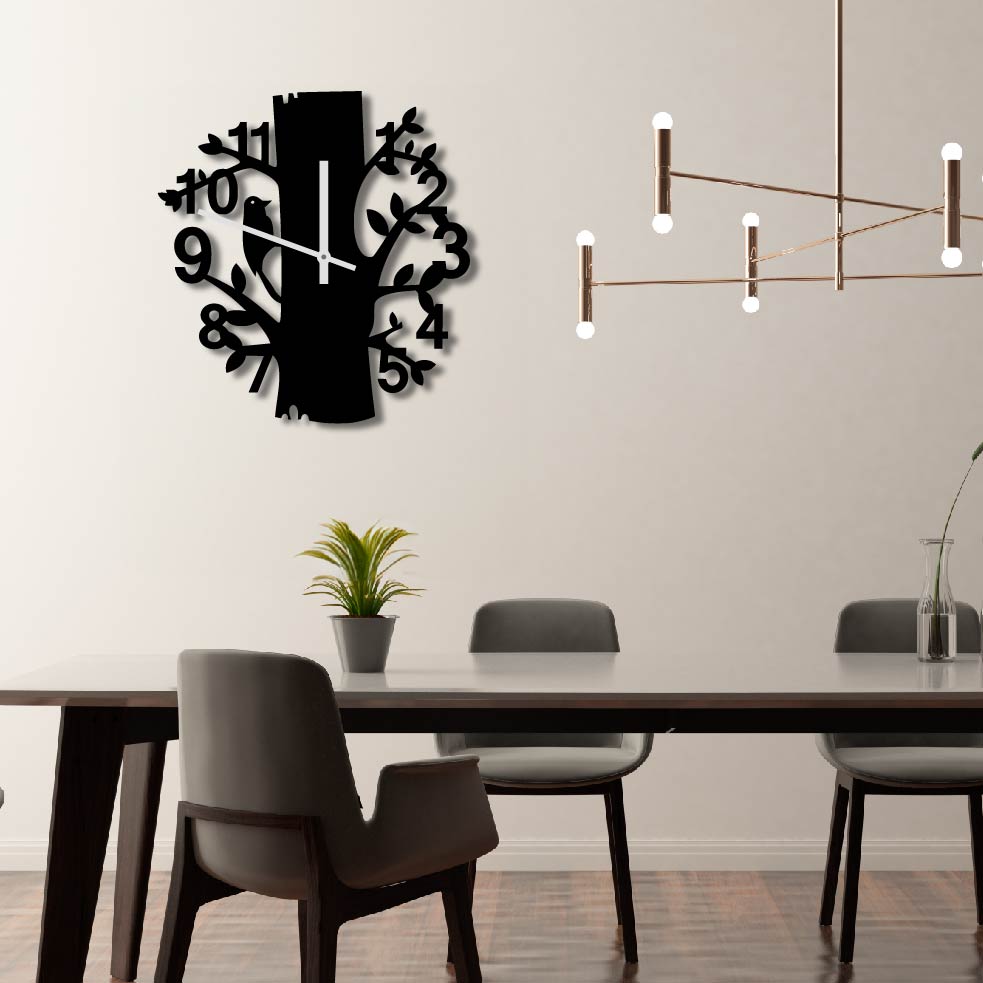 Bring your space to life with this beautiful TREE TRUNK BIRD METAL WALL ART CLOCK